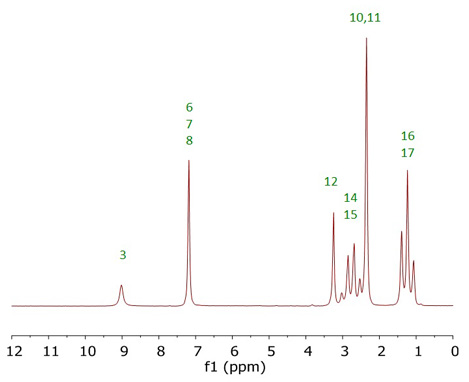 Spinsolveのこのクラスの比類なき高感度とスペクトル分解能によって希釈した試料でさえ下図の例のように高感度を提供します。 ミリモーラ(mM)の濃度があれば、ユーザーはわずか7秒でクオリティーの高いデータ取得が可能ですので必要以上のサンプル作成に時間・手間を費やす必要はありません。